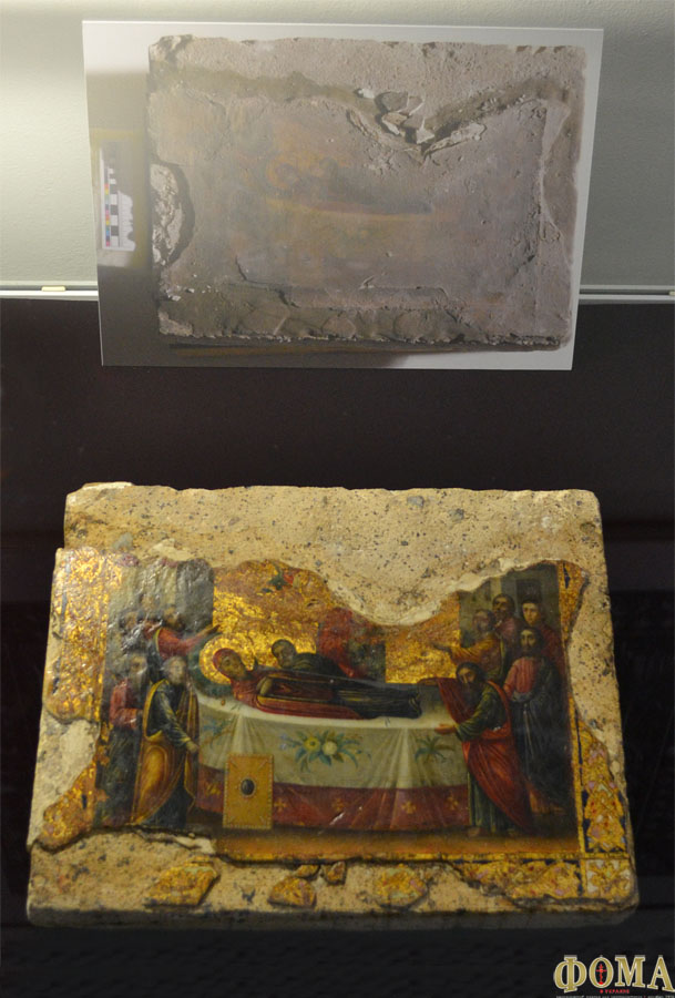 Одним із центральних експонатів є унікальна ікона Успіння Богородиці, написана в майстерні Лаври на початку XIX ст. на давньоруській плінфі періоду XI-XIII ст.
