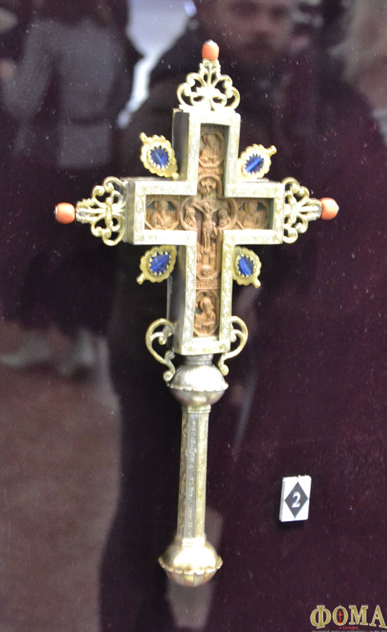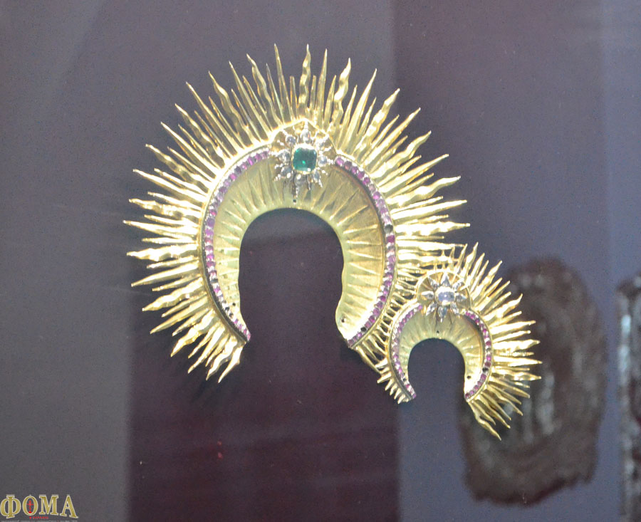 Інформацію про предмети, що зберігаються у фонді Успенського собору, дослідники збирають по крихтах. Наприклад, також представлений на виставці подвійний вінець вони довго вважали прикрасою Богородичної ікони. Але недавно з’ясувалося, що це вінець з ікони Успіння Богородиці, і вкривав він німби Спасителя і немовля — душу Пречистої, яку Він тримає на руках.